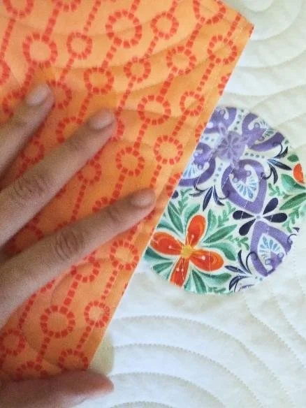 This quilt has beautifully arranged and appliqued circles. Paula chose the pantograph “Overlapping Crop Circles” and it was a perfect match for this quilt. The results speak for themselves.